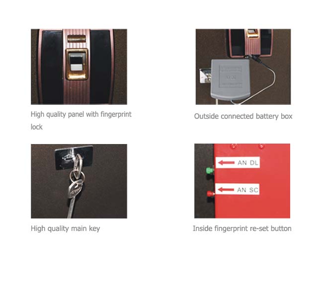 - Different ways to open the safe: code and fingerprint.